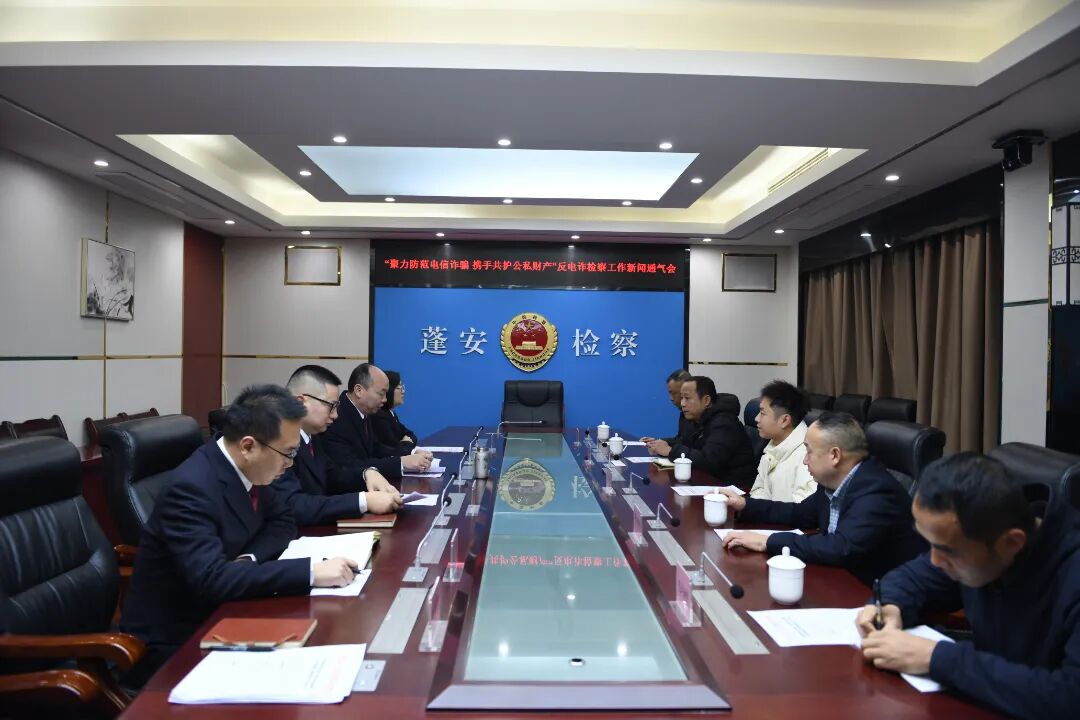 为讲好检察故事,提升人民群众反电诈法律意识和风险防范意识,进一步推动反电诈检察工作高质量开展。12月25日,蓬安县人民检察院召开“聚力防范电信诈骗·携手共护公私财产”反电诈检察工作新闻通气会。中国网、民主与法制网、四川法治报、蓬安县融媒体中心、企鹅南充等新闻媒体参加本次会议。