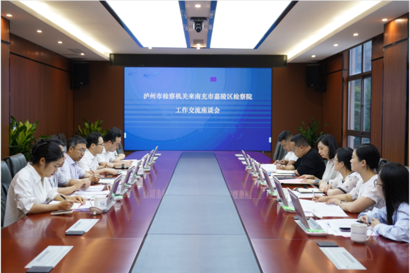 为深化跨区域检察协作,互学互鉴提升检察工作质效,9 月 18 日下午,泸州市人民检察院党组成员、副检察长郭庆带队,率泸州市两级检察院 6 名业务骨干,赴南充市嘉陵区人民检察院开展调研交流。南充市人民检察院党组成员、副检察长罗伟,嘉陵区人民检察院党组书记、检察长邹刚等陪同调研。