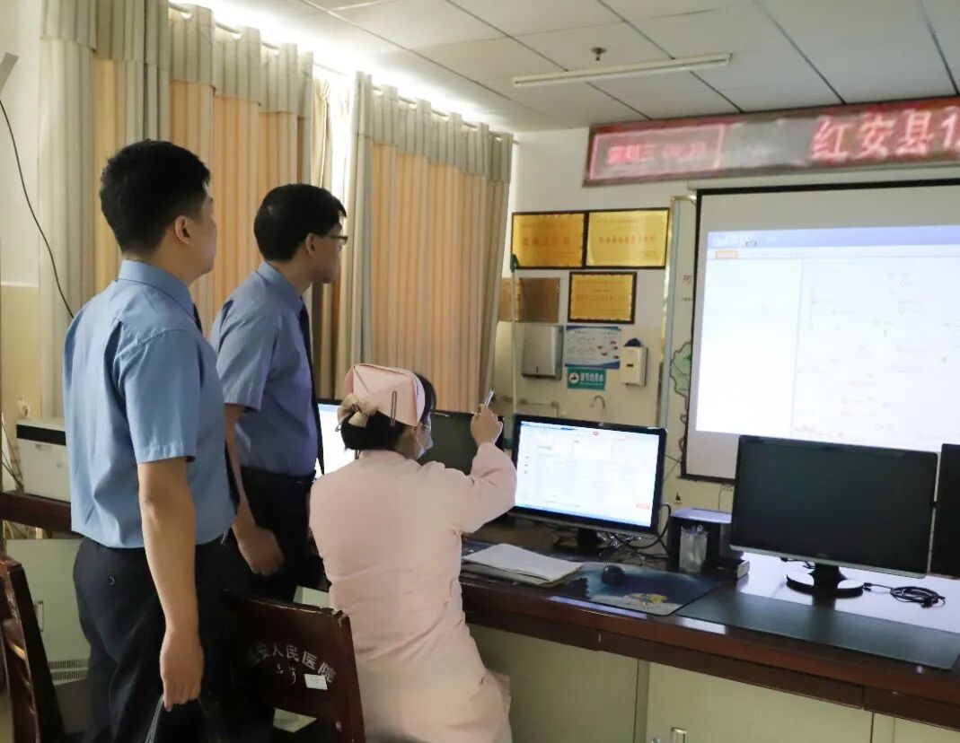 红安县院检察官实地走访红安县“120”调度中心,调查医疗急救呼叫系统文字报警功能使用情况。