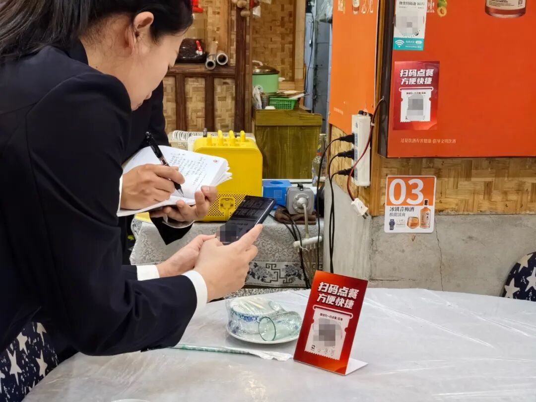 2023年2月,重庆市渝北区人民检察院(以下简称渝北区院)收到“益心为公”志愿者提供的上述线索后,决定以行政公益诉讼立案调查。检察人员组织部分“益心为公”志愿者同步检索可能存在强制扫码点餐情形的商家信息,经汇总定位后逐一走访调查,共发现12家餐饮商家存在不提供人工点餐、点餐前须关注商家微信公众号、注册时收集手机号码等情形。