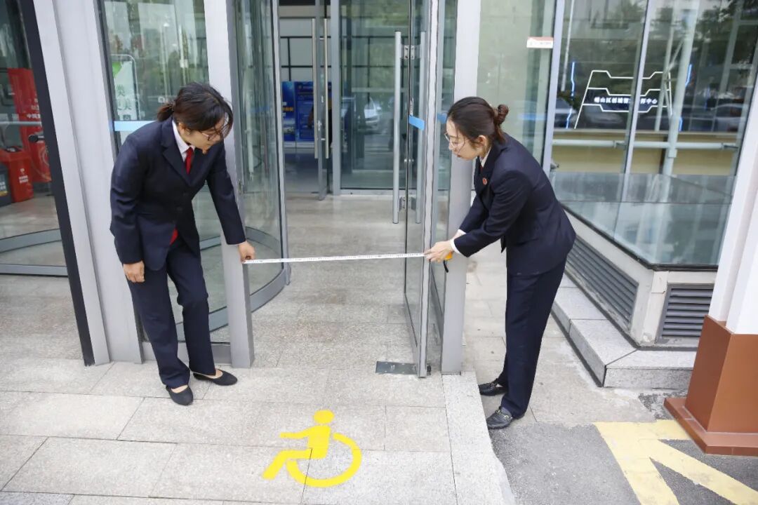 2023年4月,崂山区院邀请辖区残联工作人员对整改成效现场评估,并邀请3名残疾人代表现场体验整改效果,最终确认全部问题均已整改到位。