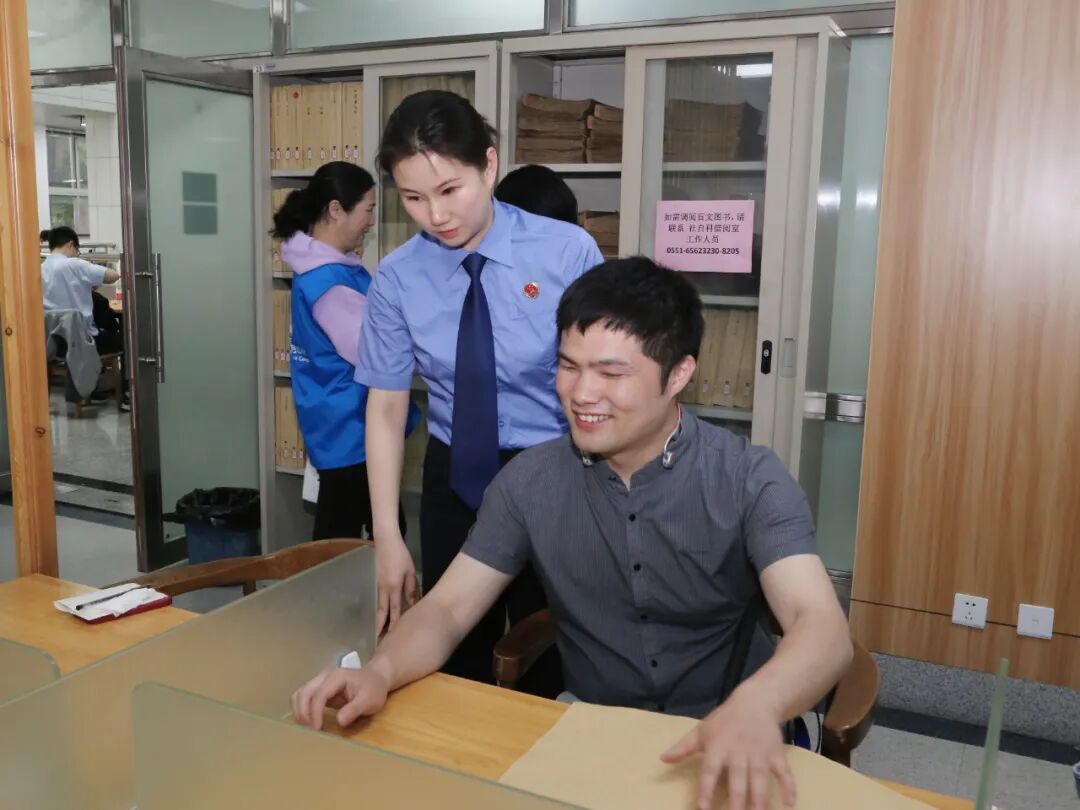 2022年5月13日,市文旅局书面回复称已进行专项整治,督促30余家图书馆完成信息无障碍环境改造,保障盲人阅览室的相关设备正常使用。蜀山区院邀请视障人士代表、无障碍环境建设督导员等参与“回头看”,联合残疾人保护公益组织在合肥市图书馆开展“文化助残,阅光同行”主题座谈会,现场翻阅该图书馆新购200余册盲文图书,体验“网络+邮寄”借阅流程和新增的无障碍信息交流设备,参会人员对视觉无障碍环境建设整改效果均表示充分认可。