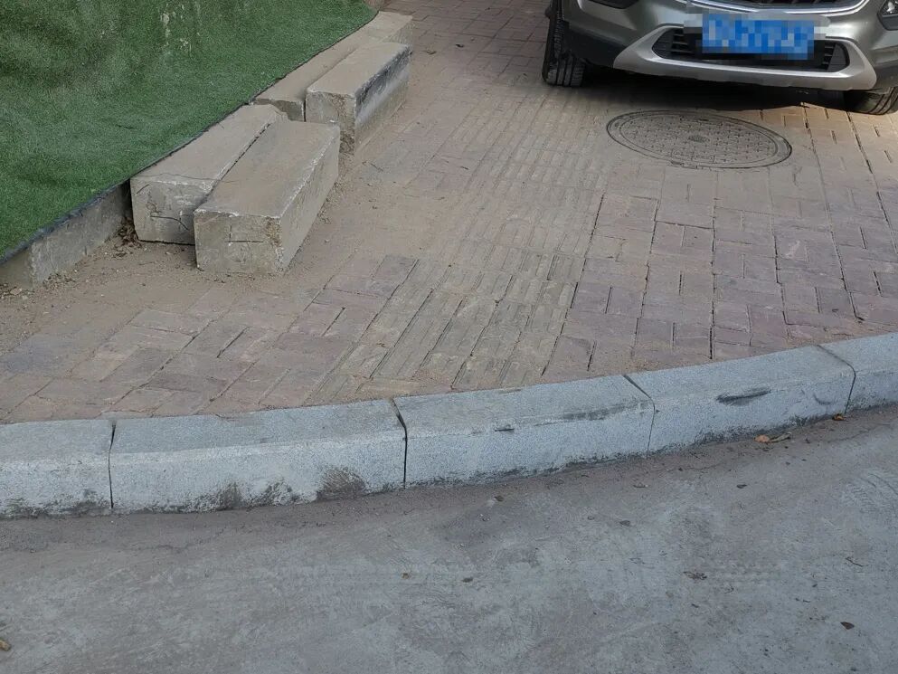 三岭湾广场无障碍轮椅坡道整改前纵向坡度比例为1:4.76,不符合《无障碍设计规范》(GB50763-2012)无障碍轮椅坡道纵向坡度比不得小于1:8的要求。