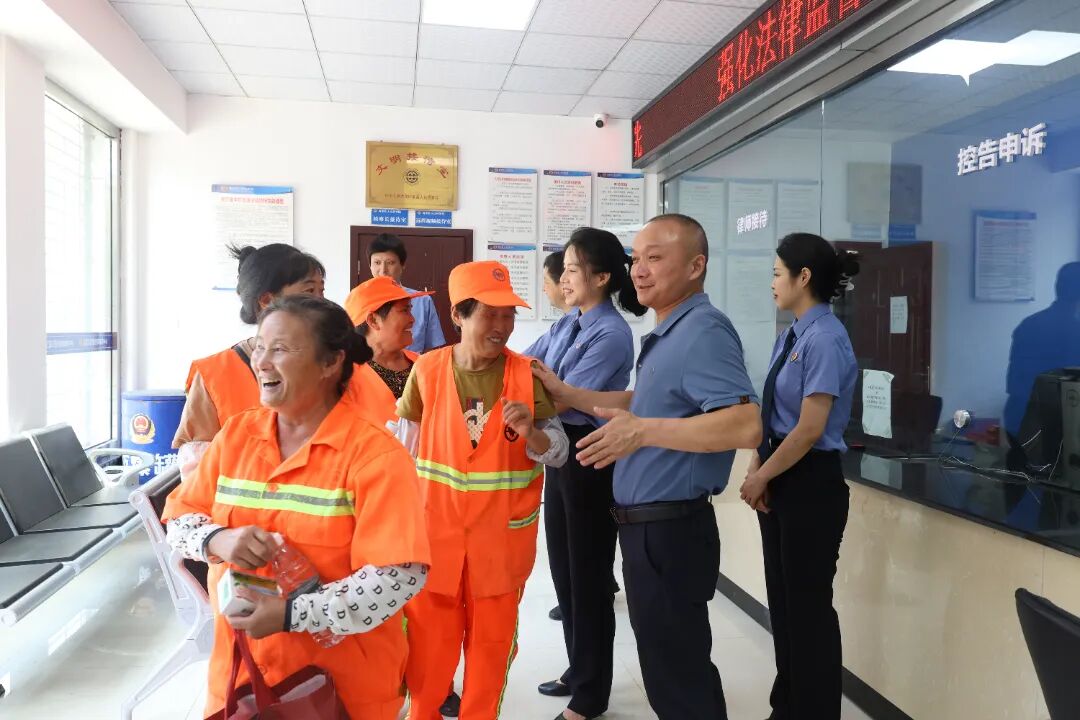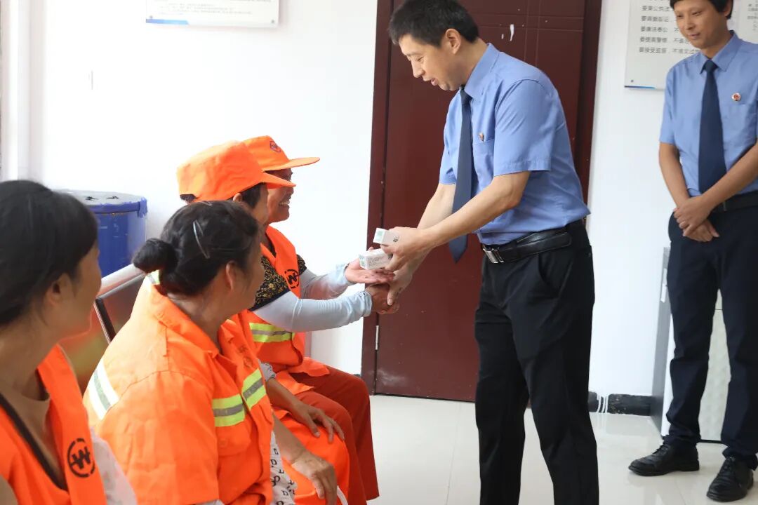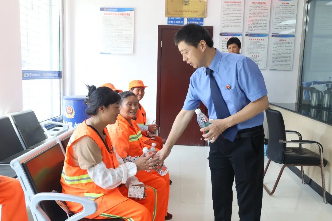 设立活动上,院党组副书记、常务副检察长王君向劳动者们讲解了保障站点的基本功能、发放了防暑物资,并承诺县检察院将为广大劳动者提供更好的工作环境和更强的司法保护。