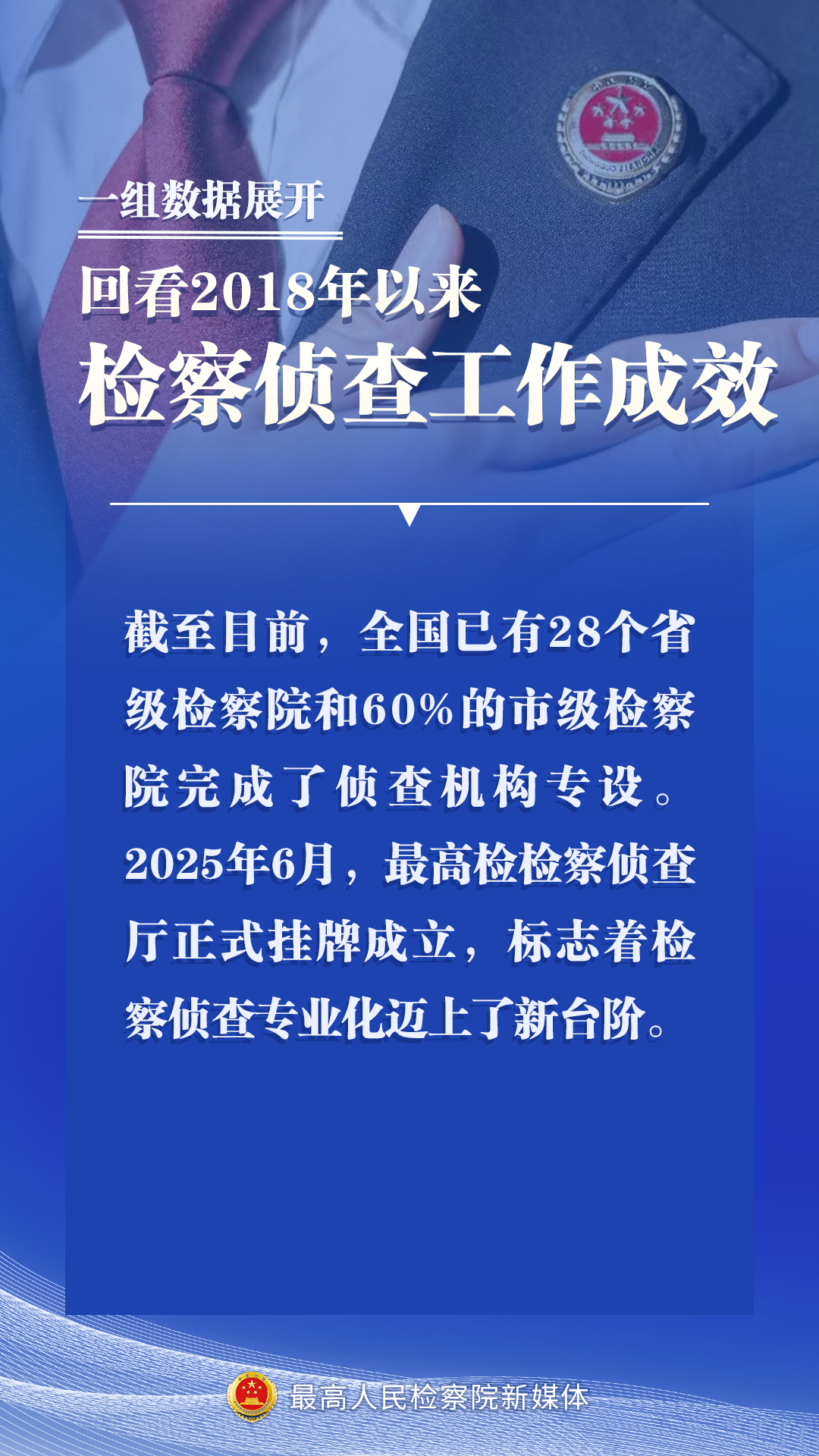 截至目前,全国已有28个省级检察院和60.1%的市级检察院完成了侦查机构专设。今年6月,最高检检察侦查厅正式挂牌成立,标志着检察侦查专业化迈上新台阶。
