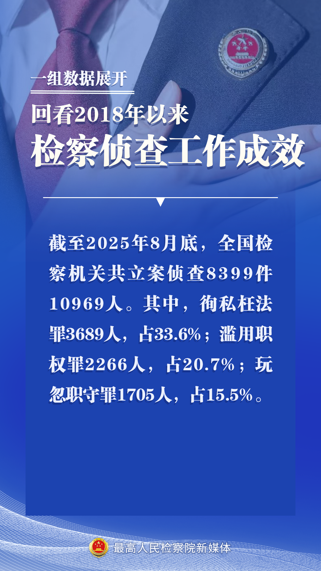 “截至2025年8月底,全国检察机关共立案侦查8399件10969人。其中,徇私枉法罪3689人,占33.6%;滥用职权罪2266人,占20.7%;玩忽职守罪1705人,占15.5%。”9月18日至19日,全国检察机关检察侦查工作会议在江苏无锡召开,会上披露了一组数据。