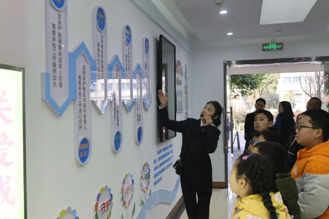 “这里是未检办案办公区,采用一站式办案模式,为未成年人健康成长提供坚实的‘司法护盾’。”跟随讲解员的步伐,受邀人员依次参观了未成年人检察办案区的讯(询)问室、关爱成长室、微型普法区等功能区。通过场景体验、实物展示等方式,“零距离”感受法治力量,切身体会“检察温度”。