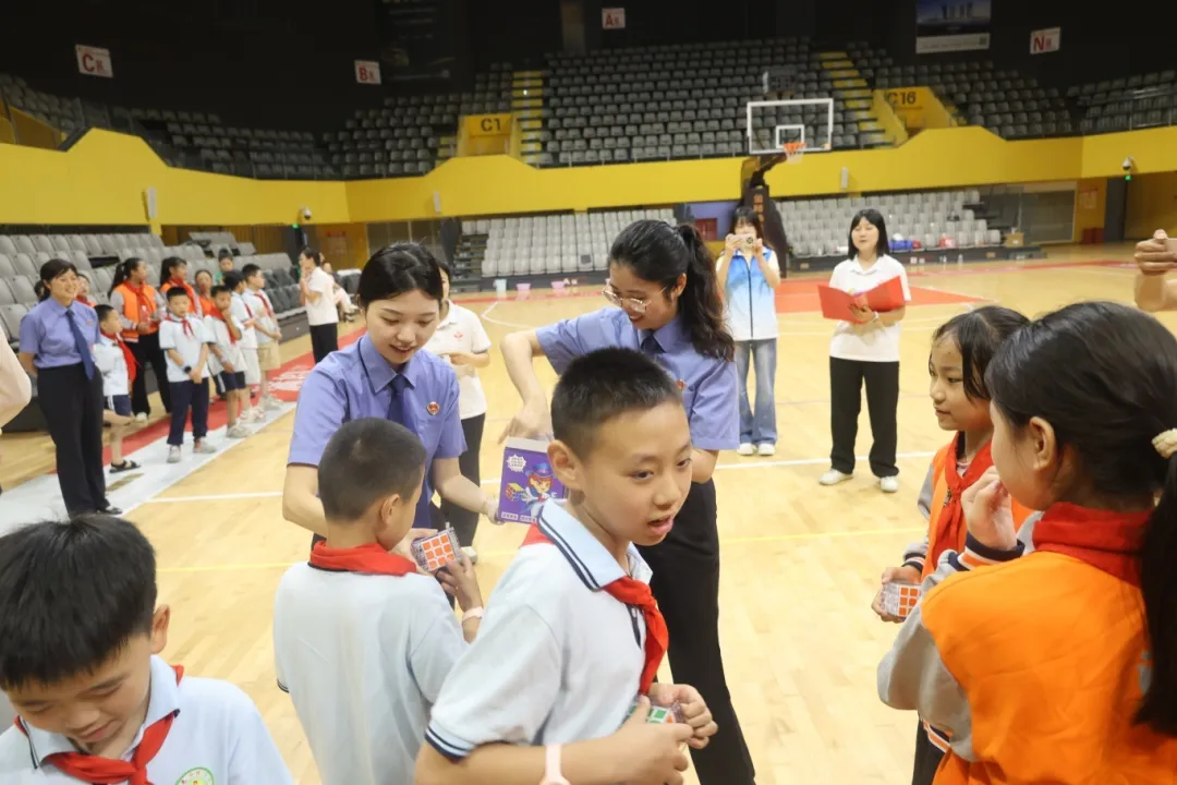 法治课后,同学们前往“南部之眼”体育馆进行参观并参与团体活动。首先,体育馆工作人员引导同学们参观场馆设施,拓宽课外视野。之后,在社工和检察干警的配合下,还开展了心理团辅。同学们共同按下彩色手印为“树叶”,法治副校长写下“我们的约定:互相帮助、遵守法律”为“树干”,组成一棵茂盛的“法治大树”。社工们还为同学们带来应急救援知识科普,提升应对突发情况的能力。