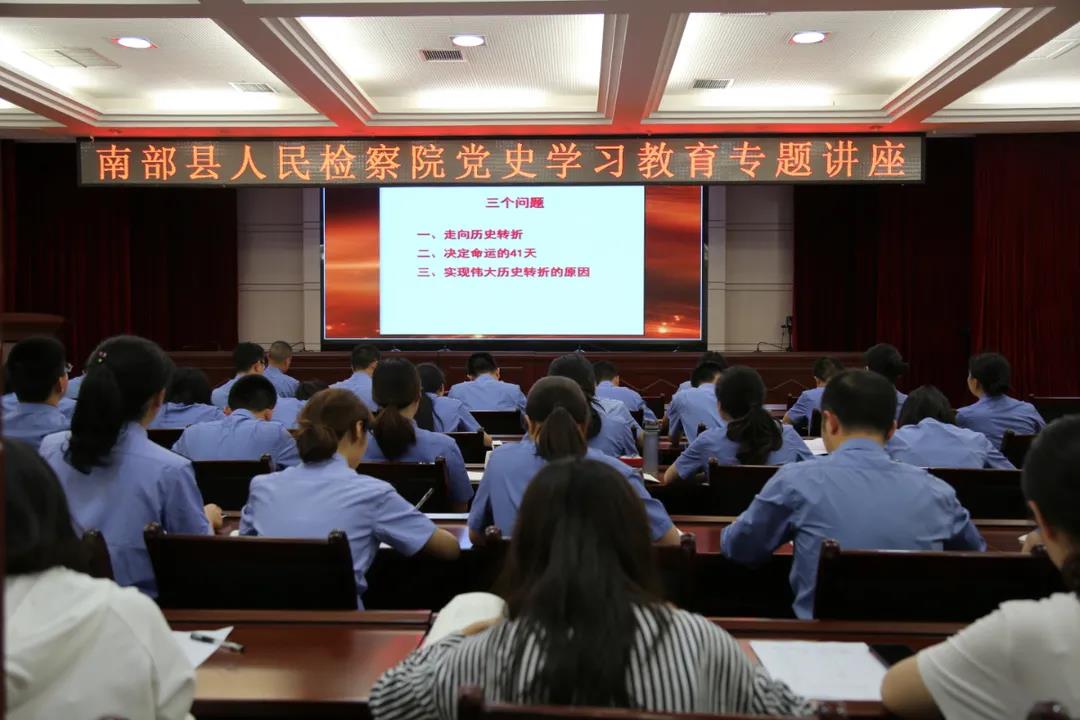 从党的伟大历程中汲取力量,把党的绝对领导、党的事业、党的初心使命变成检察办案的政治标准,把党史学习教育作为不断提高新时代检察工作能力水平的“磨刀石”、激发队伍干事创业精气神的动力源,以更强的检察自觉担当体现学习教育的更优成效。6月17日,南部县人民检察院举办党史学习教育专题讲座,观看《党的十一届三中全会与伟大历史转折》专题片,在家班子成员、全院干警参加。