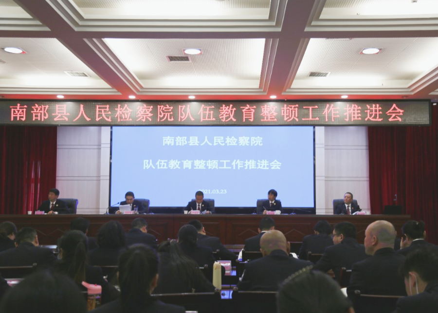 为推动队伍教育整顿工作,3月23日,南部县人民检察院召开队伍教育整顿工作推进会,传达学习全省政法教育队伍整顿工作推进会精神,总结分析当前学习教育环节工作,集中观看职务犯罪案件庭审视频及抗疫先进人物事迹专题片。院党组成员、副检察长袁晓春主持会议,全院干部职工参加。