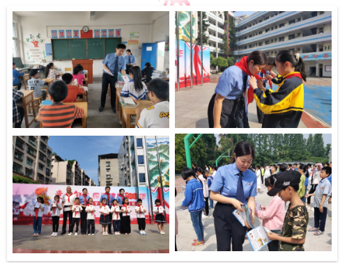 5月31日清晨,南部二小校园里,检察蓝遇见了红领巾,“彩虹桥知心姐姐“团队参加一年级少先队员入队仪式。鲜艳的队旗、可爱的笑脸、高举的小手、铿锵有力的誓词,在庄严的入队仪式结束后,检察官向少先队员代表赠送了法律书籍,优秀少年队员为检察官佩戴上红领巾。随后,团队来到黄金镇小学,与全校师生共同参与升旗仪式,向校方赠送法律书籍,并宣讲了两法的重点内容,检察官与校长在黑板上共同写下此次活动的主题,同时祝同学们六一儿童节快乐,希望同学们在法治阳光下茁壮成长,成为国家栋梁。