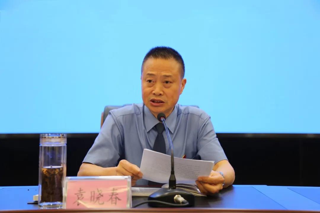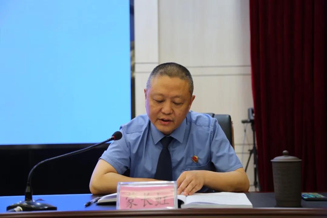 政治部主任何林勇同志组织学习《南充市政法队伍教育整顿领导小组关于进一步加强思想发动推进自查自纠工作的通知》。