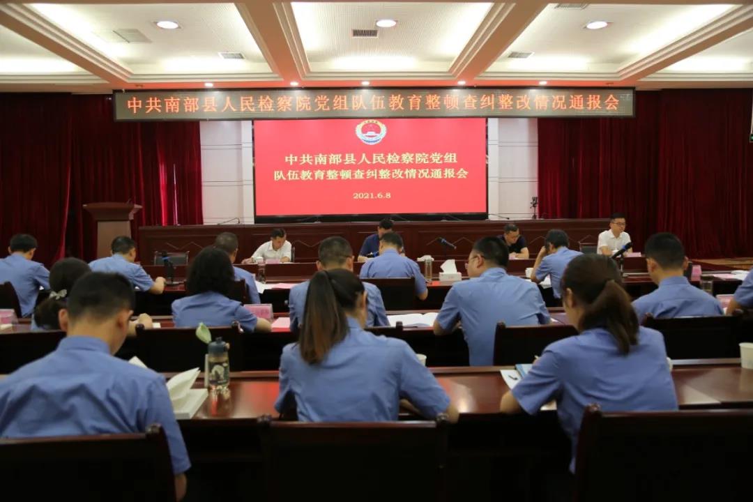 6月8日上午,南部县人民检察院召开查纠整改情况通报会,通报本院查纠整改环节情况,班子成员作出承诺。会议由院党组书记、检察长李晓冬主持,全体班子成员、各部门负责人、干警代表参加了会议,省政法队伍教育整顿第十一指导组林彤、县委政法委副书记蒲军、县纪委监委组织部部长雍西平、县委组织部部委委员蒲杰到会指导。