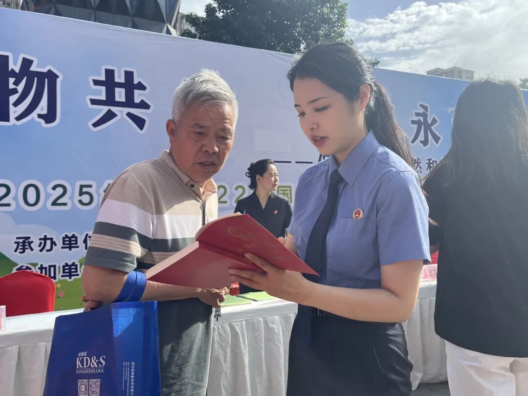 在活动中,检察干警向群众发放了精心准备的宣传册,详细地为群众讲解法律知识,并结合公益诉讼典型案例进行生动阐释。通过这些鲜活的案例,广大群众对生物多样性保护有了更为直观、深入的认识。