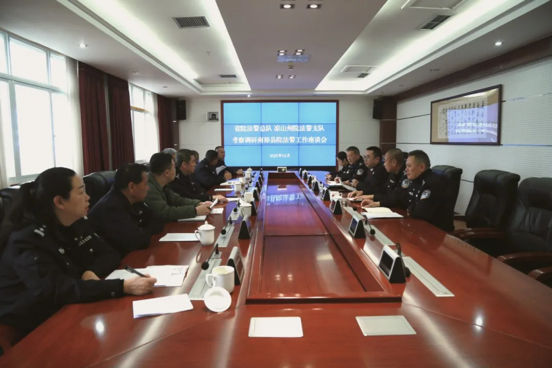3月12日,省检察院法警总队总队长邱波、三级调研员吴小华、凉山州检察院法警支队副支队长马晓毅及部分基层院法警工作负责人等一行到我院考察调研司法警察工作。