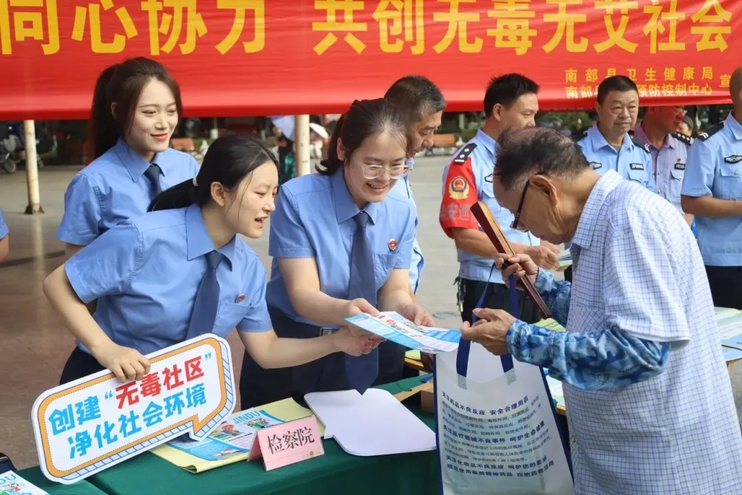 6月26日,在第38个国际禁毒日到来之际,南部县检察院联合县公安局、司法局、卫健委等部门在柳林广场开展“6.26国际禁毒日”主题宣传活动。