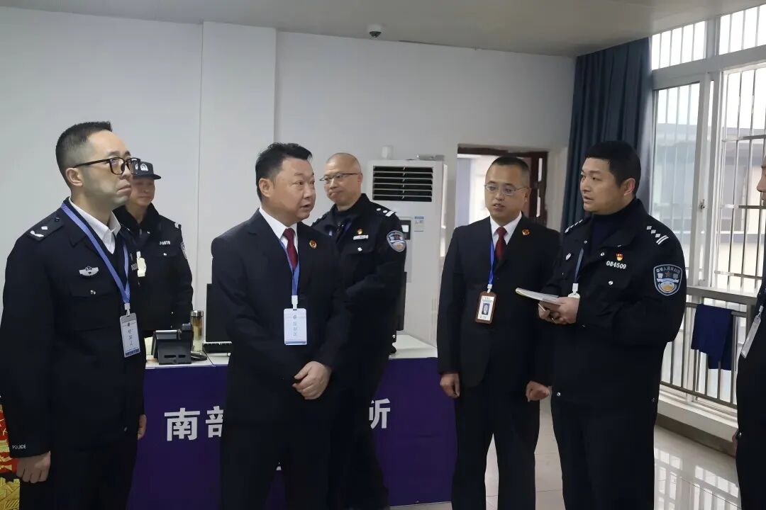 1月23日上午,南部县人民检察院党组书记、检察长李晓冬、县人民政府副县长、公安局长青旭松、副局长张明等一行人对南部县看守所开展安全检查督导。