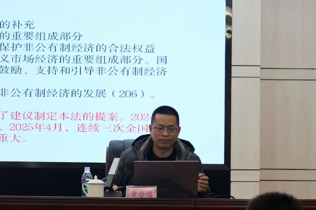 11月26日,为持续深化检校合作,提升干警综合履职能力,南部县检察院邀请成都理工大学文法学院(纪检监察学院)法学系主任、硕士研究生导师章合运教授,以“法治化营商环境建设的检察实践与探索”为题,为全院干警送上一堂兼具理论深度与实践温度的法治盛宴。