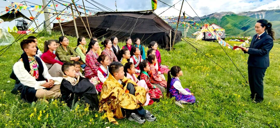 2025年7月,甘孜县检察院检察官在牧场为孩子们开展法治宣讲。