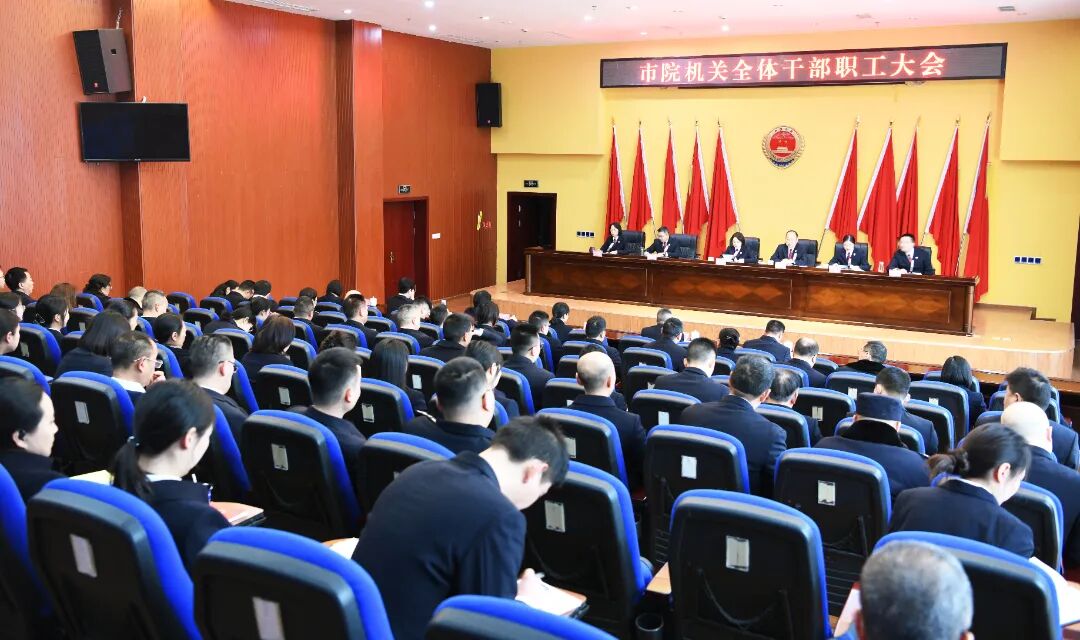 1月26日上午,市检察院机关举行年终工作总结会,盘点成绩、部署工作,号召干警职工在新起点上锚定目标、奋勇前行。市检察院机关全体干警职工参加会议。