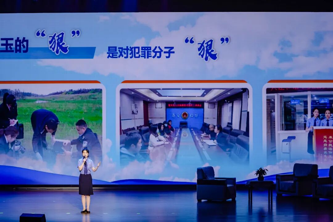 宣讲人晏玉环深情讲述全国先进工作者张晓波的故事——从人民教师到国家公诉人,他将“办案”化成“办人生”,把“小案子”办出“大情怀”;一句“当官不为民做主,吃不上老百姓的白豆腐”,让现场掌声经久不息。