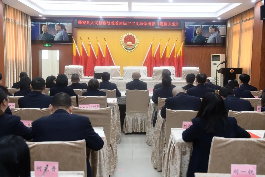 在集中学习会和支部学习会,全体干警观看了《建国大业》《开国大典》《焦裕禄》等红色经典影视,深刻体会建立新中国的来之不易,以缅怀先烈、不忘国耻,增强民族意识,弘扬爱国精神。