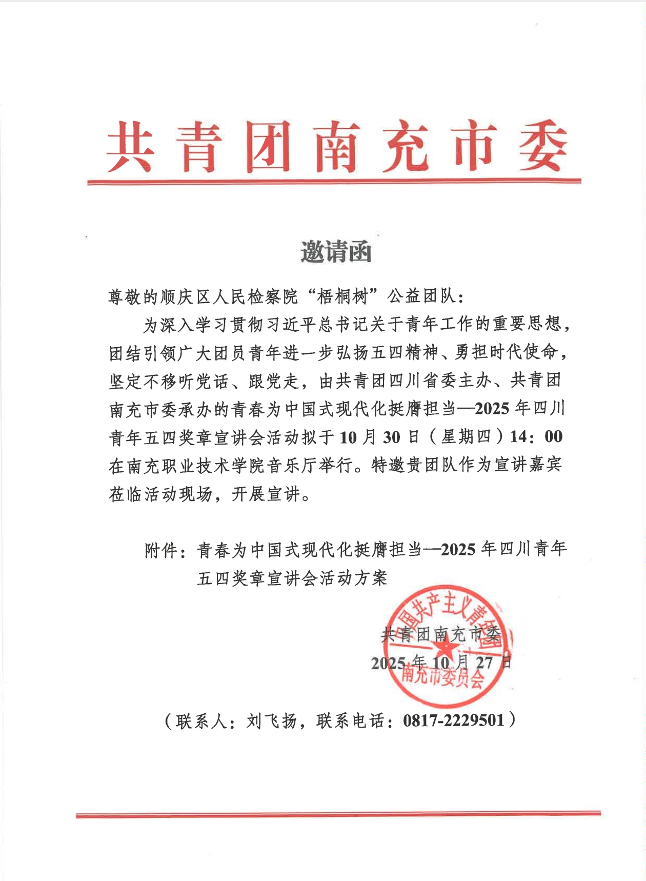 顺庆区人民检察院“梧桐树”公益团队受邀参加2025年四川青年五四奖章宣讲会