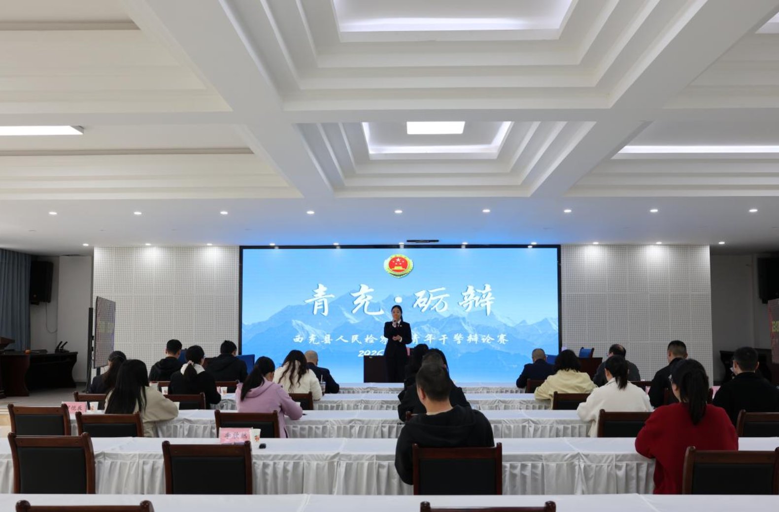 在立论环节,参赛选手准确把握辩题核心,从多角度展开论证,逻辑推进层层递进,体现出扎实的法学素养;进入自由辩论后,双方围绕案件争议焦点激烈交锋,攻守转换进退有据,言语虽具锋芒却不失法理温度,充分反映了青年干警严谨的思维品质与敏捷的现场反应能力;最后的总结陈词中,各组选手对己方观点进行了系统归纳与有力巩固,充分展现了过硬的法律素养与娴熟的论辩技巧。
