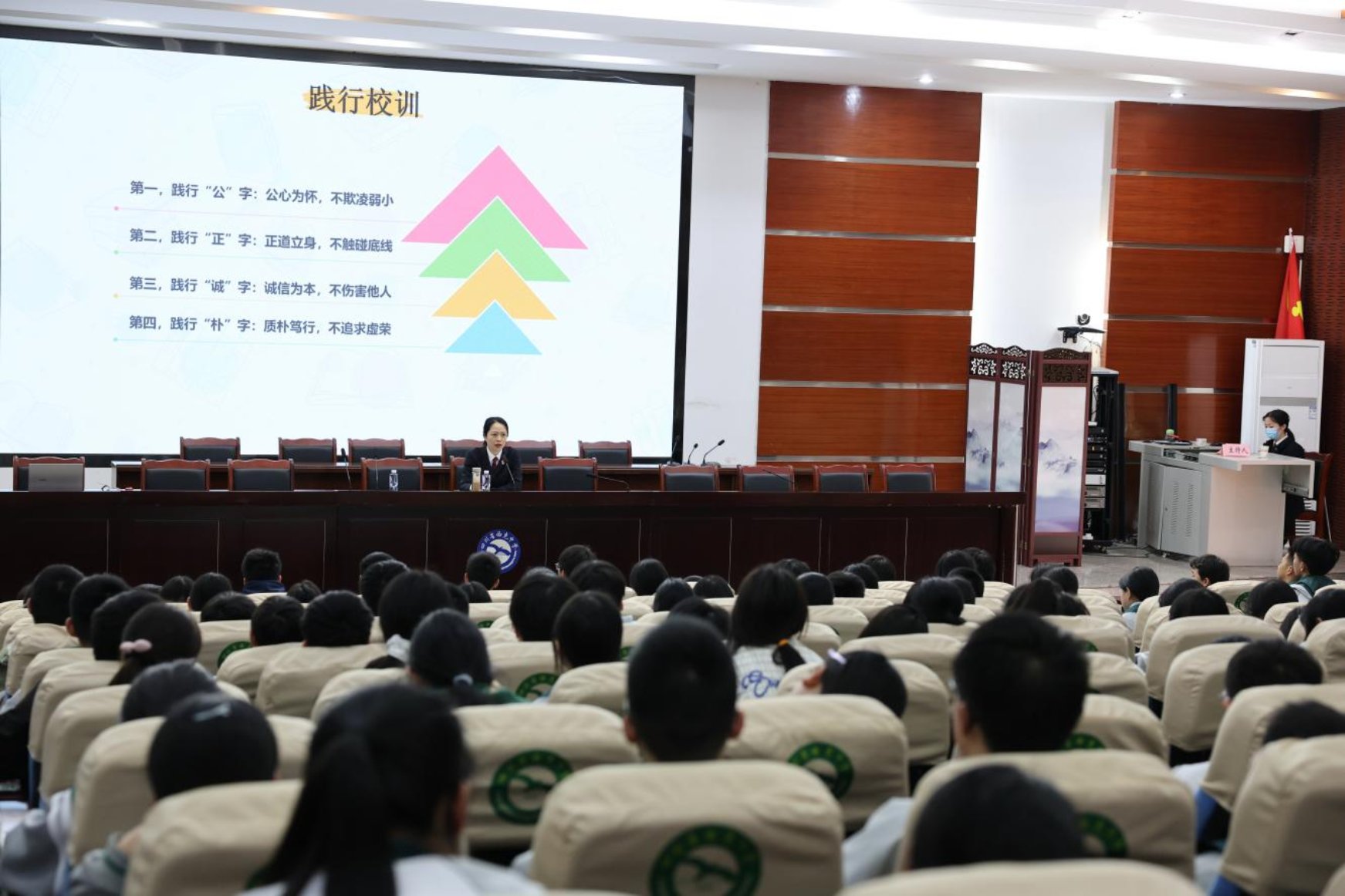张婷检察长当场代表县检察院作出三项承诺:一是零容忍惩治校园欺凌违法犯罪,维护未成年人合法权益;二是常态化开展定制化“法治进校园”活动,实现法治教育全覆盖;三是深化检校社协作,构建未成年人保护体系,凝聚保护合力。同时鼓励同学们以校训为引领,做有格局、守法治、有良知、肯奋斗的少年。