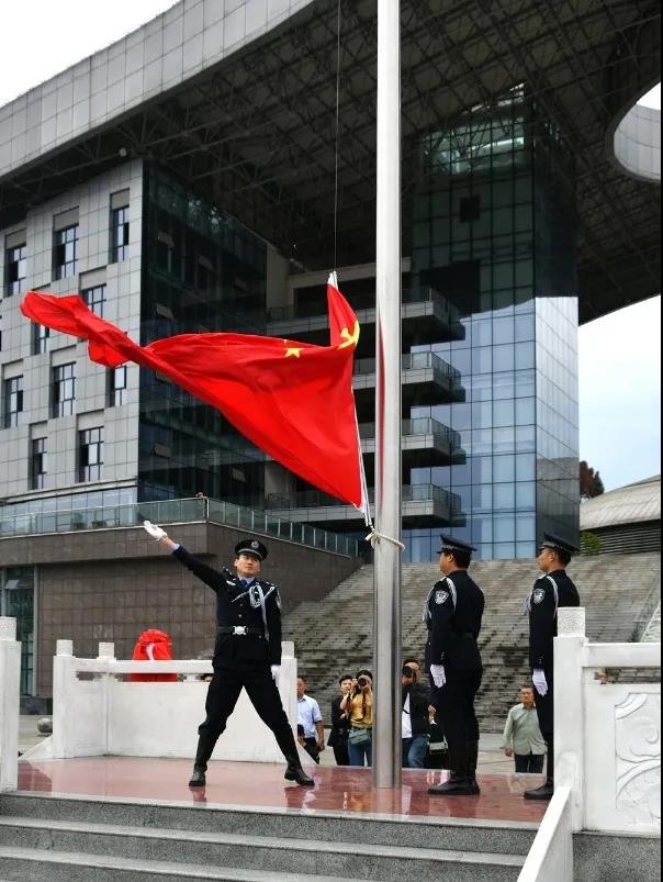 上午8:30分,党员干警们齐聚城北广场国旗台前。随着雄壮的《中华人民共和国国歌》缓缓奏响,全体人员庄严肃立,目送鲜艳的五星红旗冉冉升起、迎风飘扬。随后,全体人员齐唱《没有共产党就没有新中国》《歌唱祖国》,一面面国旗与党旗跟随激昂的乐曲在手中挥扬……