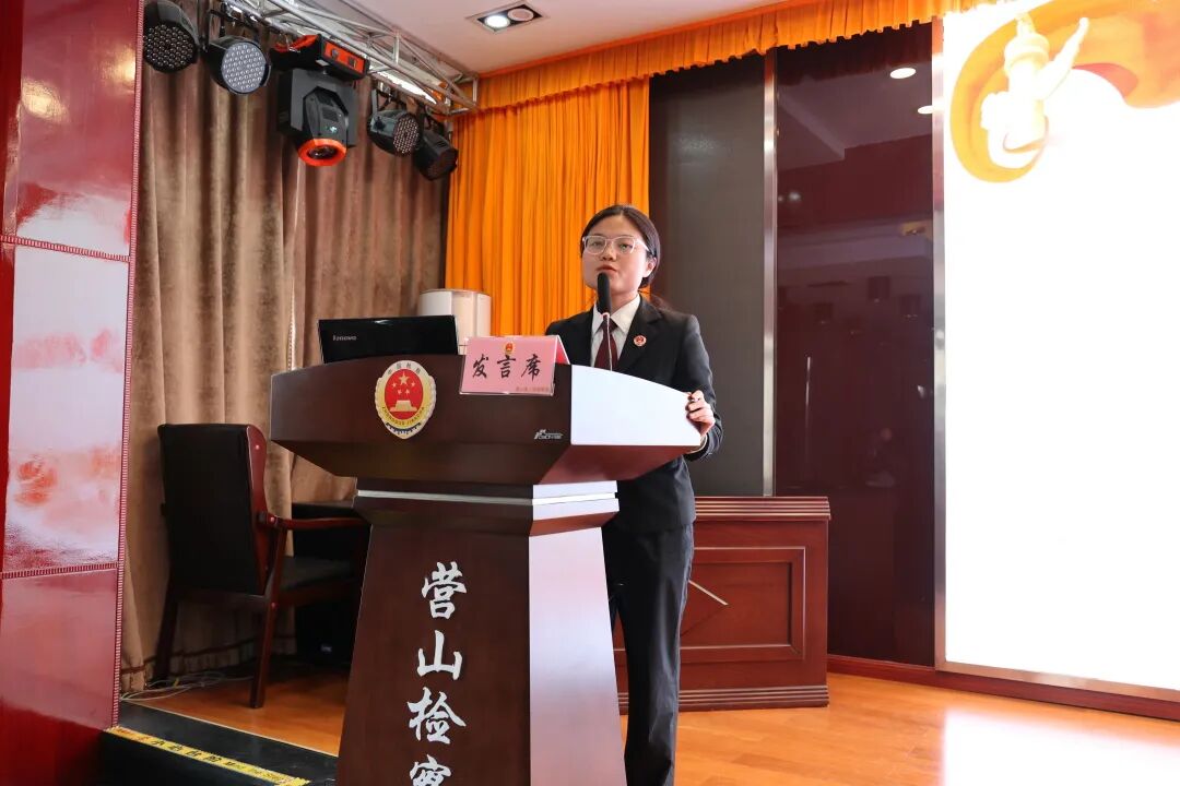 新招录干警谢敬表示将尽快转变角色,融入检察院这个大家庭。同时提高思想认识,强化学习自觉,严格要求自己,时刻把纪律和规矩挺在前面,切实维护好检察干警的良好形象。