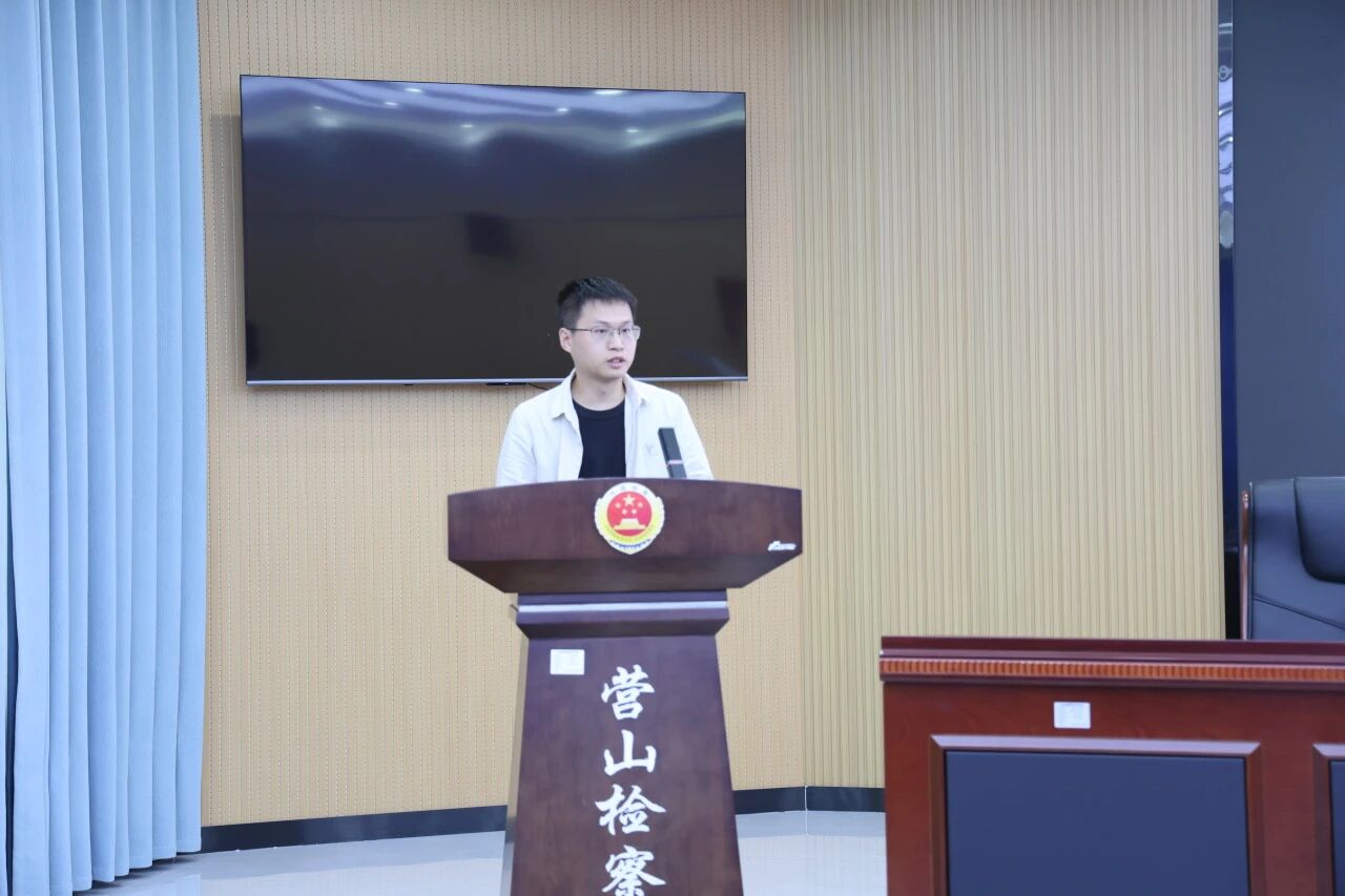 新同志廖兴旺上台作自我介绍,并表示作为新进检察人员,将尽快转变角色,提高思想认识,强化学习自觉,严格要求自己,同时把纪律和规矩挺在前面,切实维护好检察干警的良好形象。